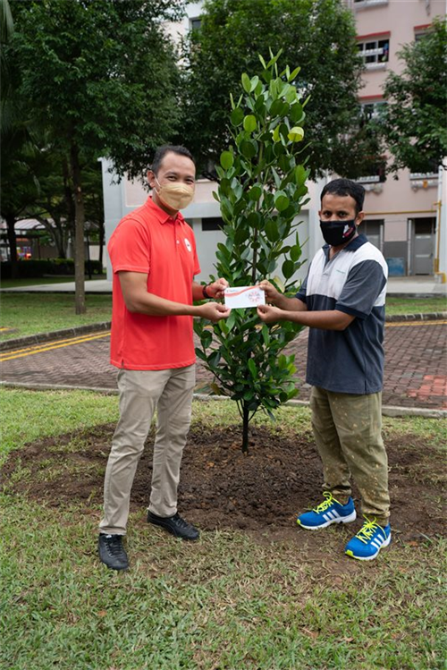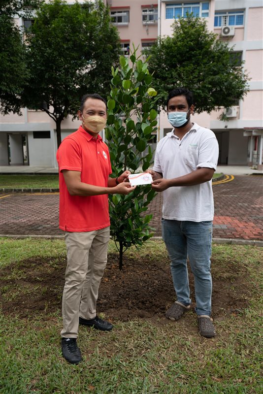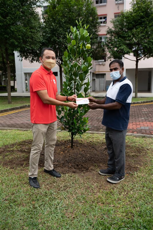 MP Mr Mohd Fahmi Aliman, together with some of the community partners, came together to plant two new trees within the Geylang Serai constituency. To thank our cleaners for their effort in upkeeping the cleanliness of the estate, vouchers were given out to them.