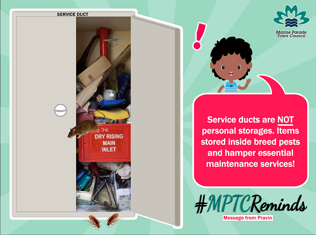 Aside from the consequences stated by Pravin, here's a reminder that personal items stored inside service ducts are also subject to theft & removal by Town Council personnel without further notice. So keep them clear at all times! #MPTCReminds